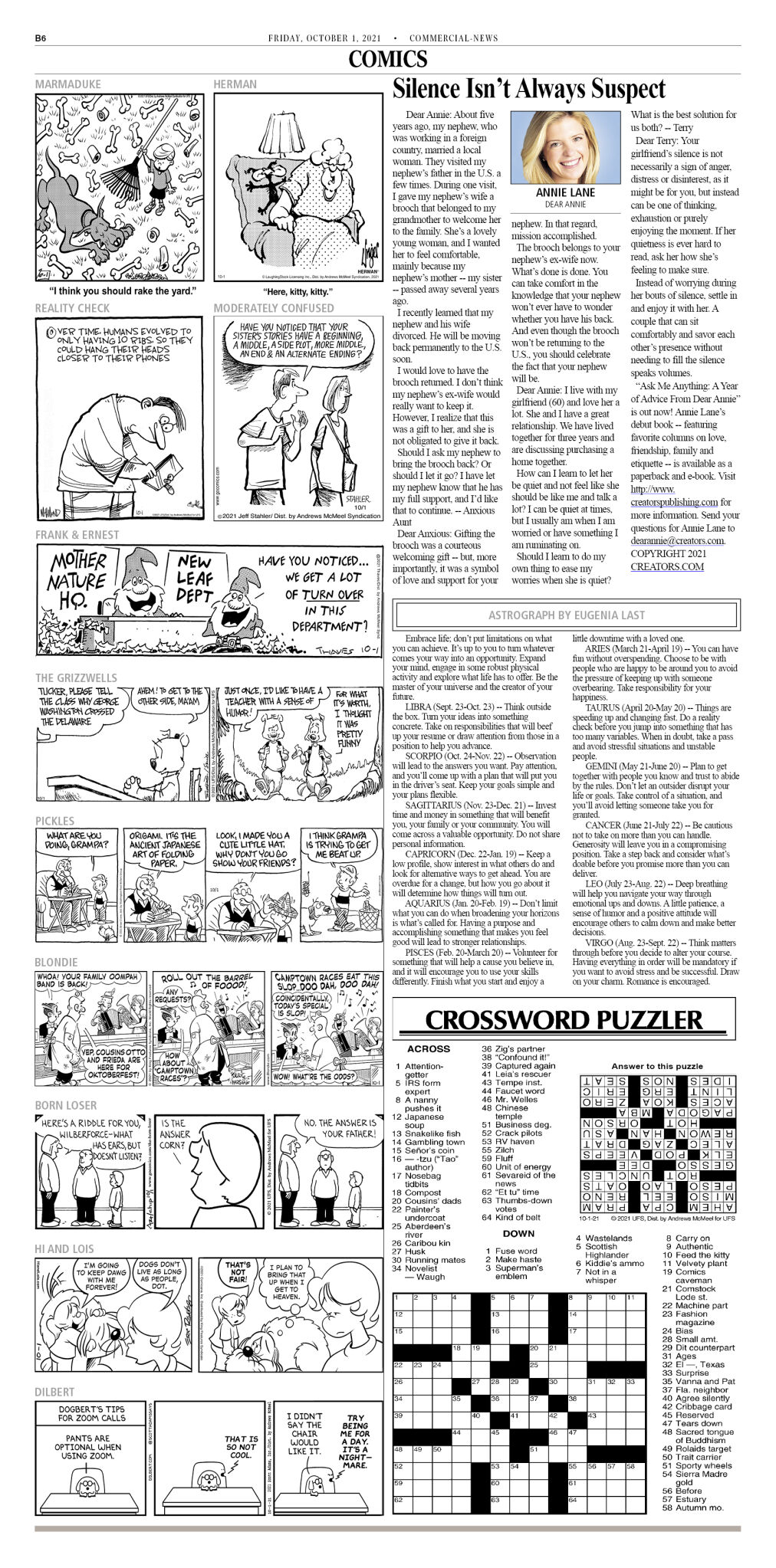Crossword Puzzle Advice Comics For October 1 2021 Community Commercial News Com
